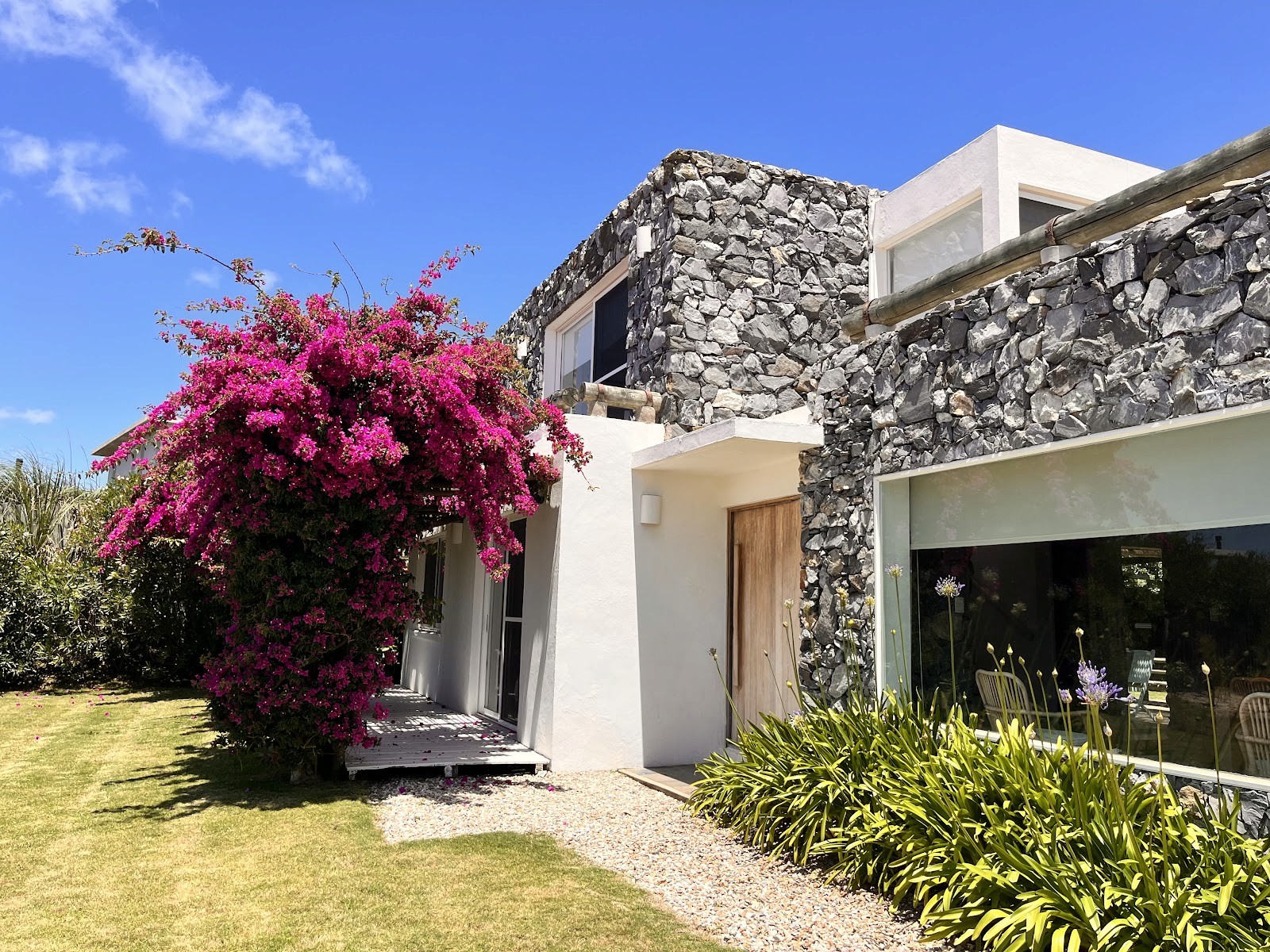 This beautifully designed property features four bedrooms and is laid out across two separate wings, offering both privacy and comfort. Upon entering, you’re welcomed into an open-concept living and dining area that seamlessly connects with a fully equipped kitchen featuring a breakfast bar. A cozy wood-burning stove and a spacious lounge with a TV create the perfect setting for relaxation. The left wing on the ground floor includes two bedrooms that share a full bathroom—ideal for family or guests. Upstairs, the main suite impresses with a walk-in closet and stunning panoramic views. On the opposite wing, another elegant master suite offers equally breathtaking scenery. Outdoors, the property boasts a well-appointed barbecue area—perfect for enjoying outdoor meals and entertaining. Additional amenities include a separate service quarters with a private bathroom and a dedicated laundry area.