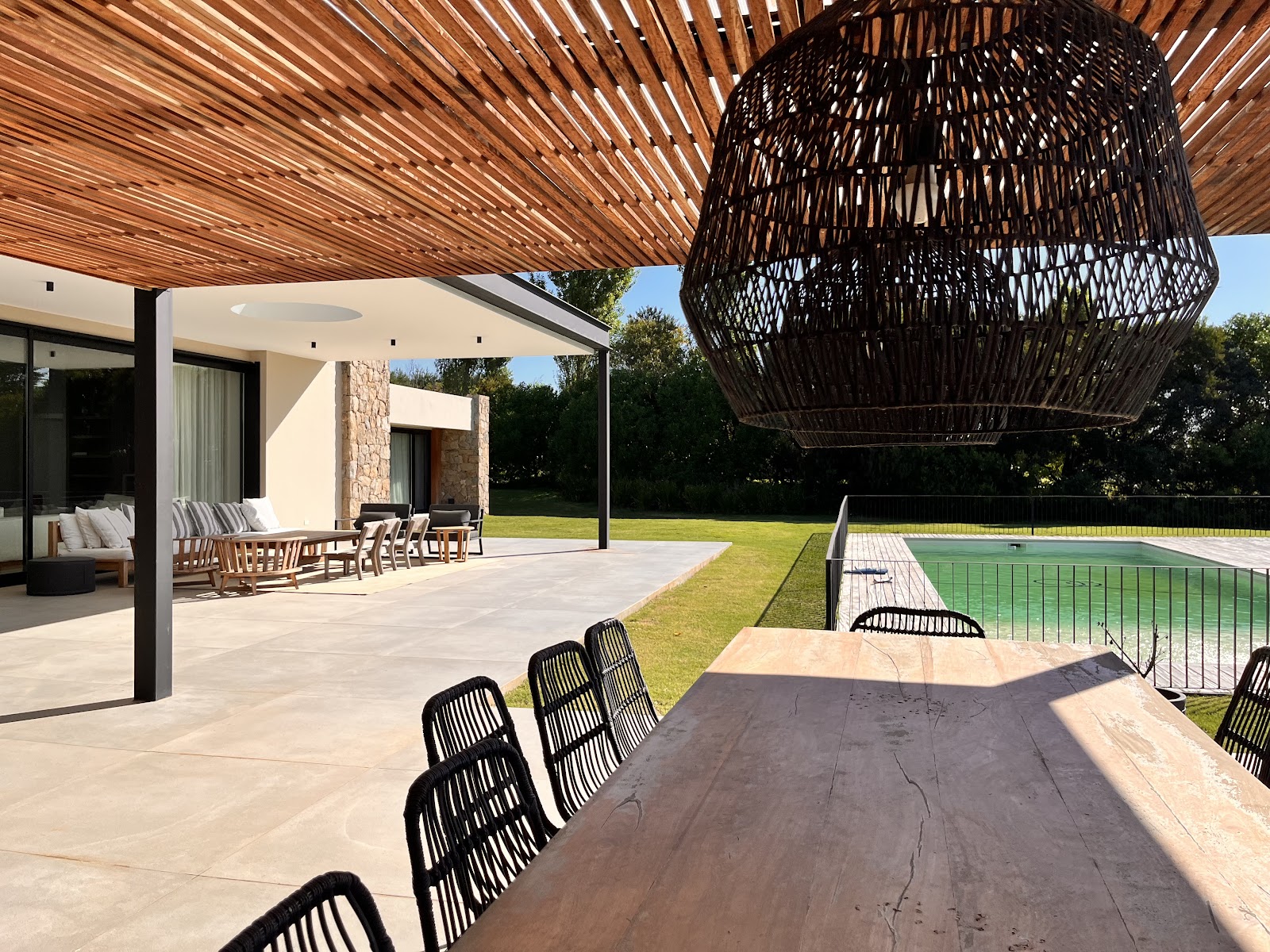 This beautiful 4-bedroom villa is located in Pueblo Mío, one of the most sought-after and rapidly growing private communities in Punta del Este. Just five minutes from Manantiales Beach and ten minutes from La Barra via the scenic Golf Road, the property offers the perfect balance between nature, privacy, and easy access to the area’s most popular spots. The interior features a spacious and sunlit living and dining area with a warm, inviting atmosphere, along with a comfortable playroom ideal for families. The kitchen is large, bright, and fully equipped, designed for both functionality and enjoyment. Connected to the main living space is a covered outdoor gallery with a traditional Uruguayan BBQ, outdoor furniture, and dining space — perfect for relaxing and enjoying the natural surroundings. This villa is an ideal choice for those who want to unwind in comfort while staying close to the best of the coastline.